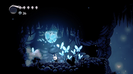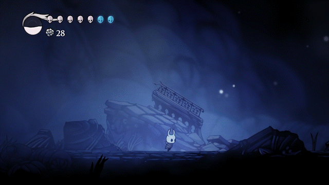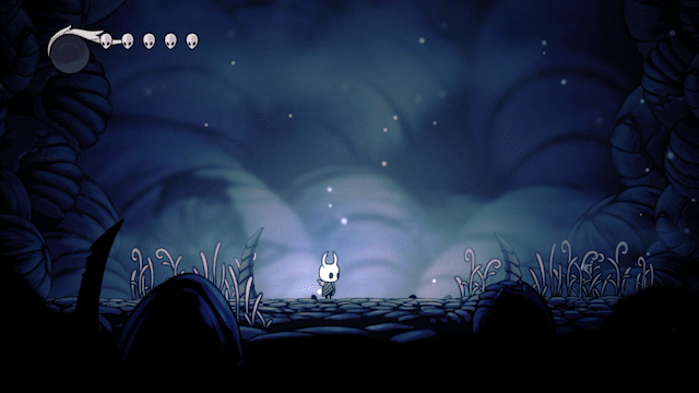 The pacing of Hollow Knight can be considered slow throughout the first level. This allows the player to take their time learning and adjusting to the game mechanics. There appears is no time or limit to keep the player from moving at their own speed.