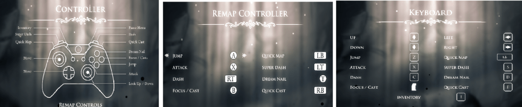 The aesthetic sensation of control is considered especially responsive and fluid. In many cases there may or may not be lag input when compared to other platformers. However, Hollow Knight holds an exceptional input control, allowing the movement of the avatar or player model to feel clean, smooth, and precise.